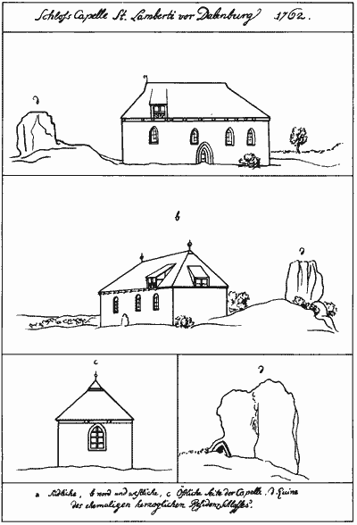 Auf einer Skizze aus dem Jahr 1762 stand noch neben der Laurentiuskapelle an der Nordwestecke auf einer Erhöhung die ,,Ruine des ehemaligen herzoglichen Residenzschlosses".
