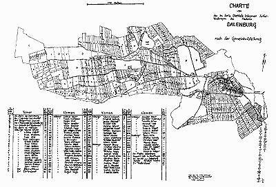 1834 meldeten die Kämmereiakten des Ortes ,,100 Feuerstellen mit 776 Seelen, darunter 84 stimmfähigen Bürgern", Häuslinge besaßen zur Verwunderung des Amtes in Dahlenburg kein Stimmrecht. Sie verrichteten Dienste, die im Bereich der Kommune lagen, konnten aber durch Entrichtung eines Dienstgeldes Arbeiten ablösen. 1841, z. Z. von Bürgermeister Voigt, zahlten 23 Häuslinge im Jahr je 1 rth 3 ggr 5 Pf und 2 Häuslinge je 13 ggr 8 Pf in die Gemeindekasse bzw. verrichteten die dem Gelde entsprechenden Arbeiten. (28) Ihr Lebensstandard hatte sich nach der Teilung der Allmende verschlechtert, da ihnen nun die Futtergrundlage für ihre Viehhaltung fehlte. Sie stiegen sozial ab in die Gruppe der Armen, die den wohlhabenden Bürgern zur Last fielen, daß diese in Gefahr gerieten, eines Tages selbst zu verschulden. In Dahlenburg wirkte sich also die Gemeinheitsteilung für viele Bürger ungünstig aus; denn auch die Inhaber von Weideanteilen mußten ihren Viehbestand verringern, da außer von Spörcken, Buhlert und die Pfarre kein Bürger einen Anger im Werte einer Kuhweide erhielt. Besaßen sie Land, konnten sie "künstliche Weiden" auf eigenem Boden anlegen, nur ein Pachtherr gestattete nicht, Äcker in Weiden zu verwandeln.