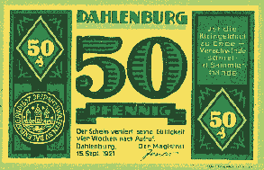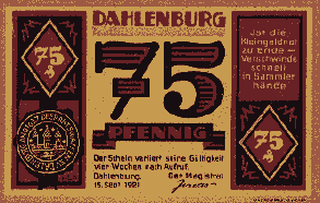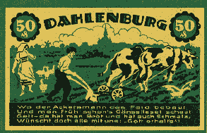 Im Winter 1917 wurden auch die Kohlen knapp. Am Anfang des Krieges mangelte es an Wechselgeld, so daß die Spar- und Darlehnskasse Notgeldscheine druckte zu 10 Pf und 50 Pf und ,,als das nicht mehr gestattet, gab der Ort kleine Scheine heraus zu 25, 50 und 75 Pf".