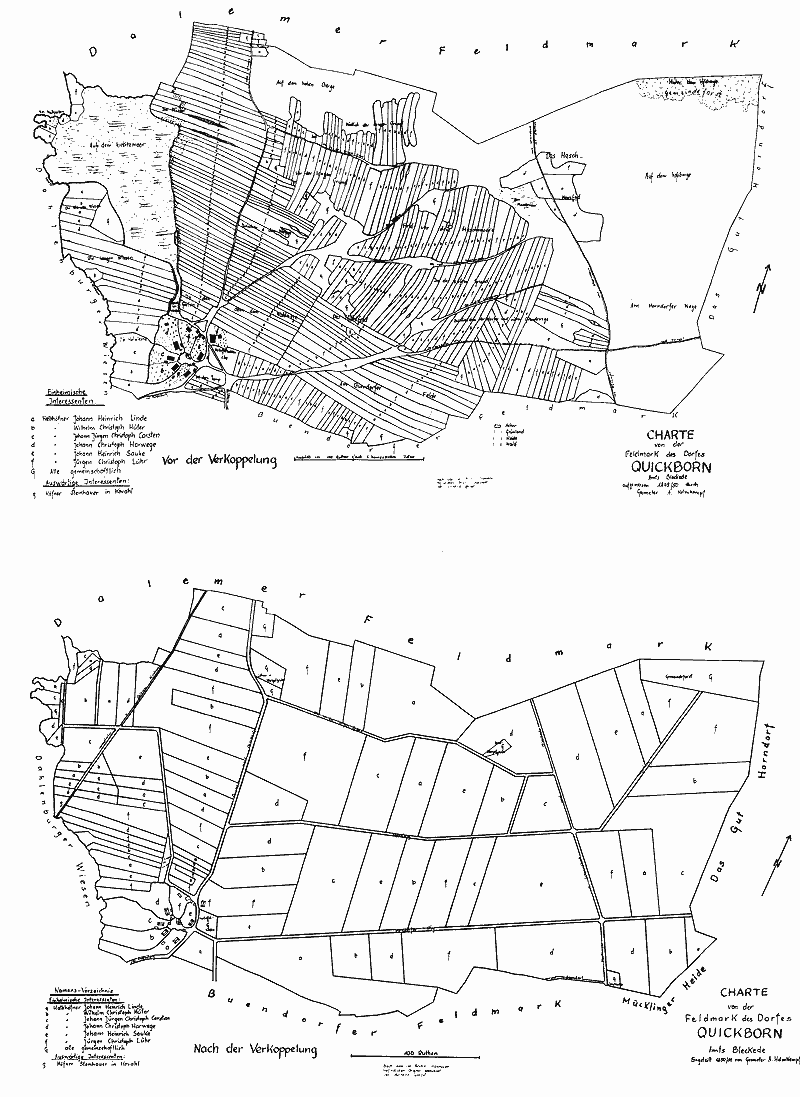 Am 14.1.1831 erschienen vor dem Königlichen Amt in Bleckede der Halbhöfner Franz Seedorf aus Quickborn und seine Ehefrau Catharina Dorothea geb. Rabeler, um ihren Hof an Jürgen Christoph Lühr, dem Sohn von Franz Seedorfs Schwester, zu übergeben. Den Neffen begleitete Johann Christ. L., der Vater und der ,,Bürger und Drechslermeister" Riesch aus Dahlenburg. S. erklärte, den Hof mit sämtlichem Inventar, Gebäuden, Vieh und Geld zu geben und sicherte sich dazu sein Altenteil.